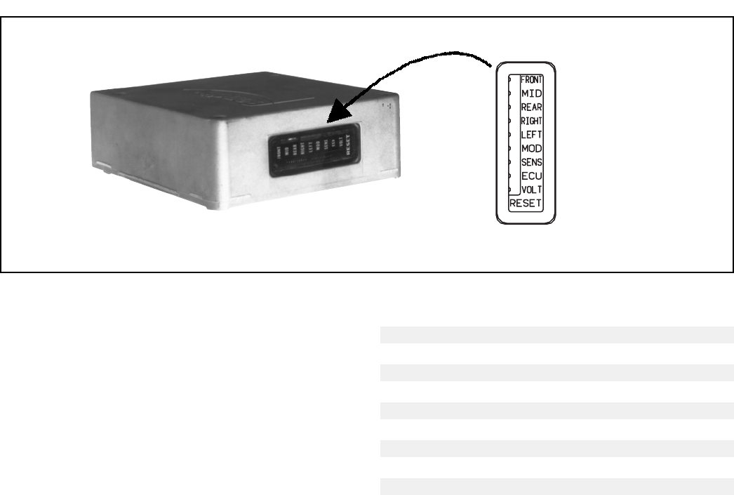 five LEDs locate a problem to a specific area of the trailer