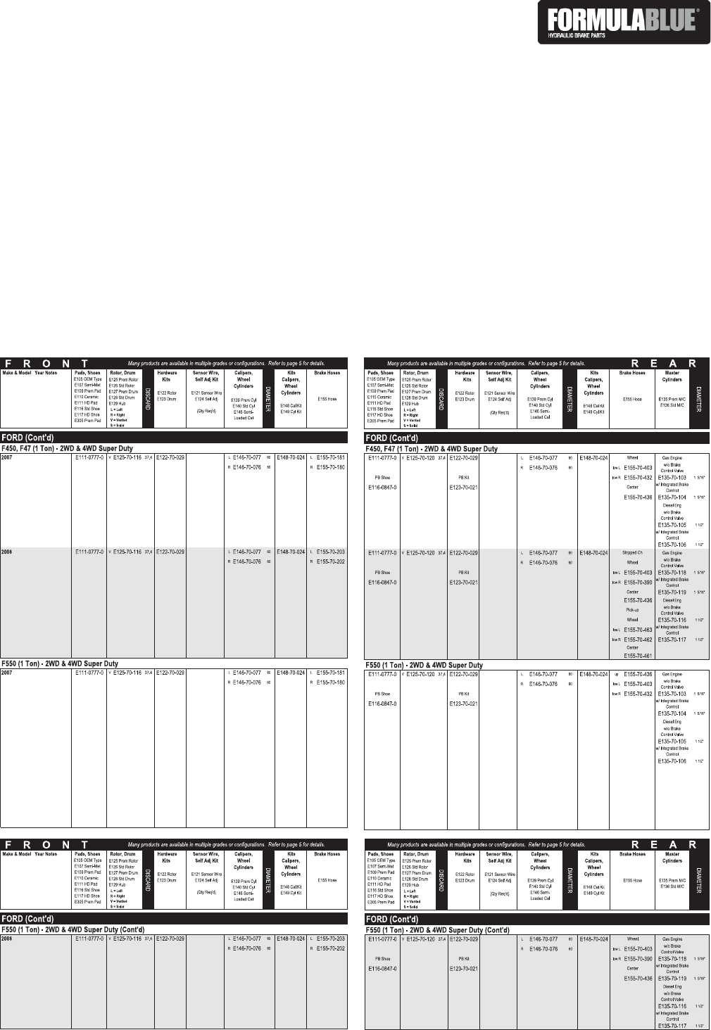 Beginning in 2005, Ford F-450’s and F-550’s began using the D1066 pad confi guration (Formula Blue part number